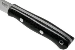 The Bark River Mini Aurora Hunter is the baby brother of the famous Bark River Aurora. You immediately recognize the pointed blade and the slim profile. This Mini, however, is slightly shorter than the regular Aurora. This knife was developed as the ultimate bushcraft knife. Prototypes of the Aurora were extensively tested by bushcraft-experts in North America and Europe. Based on their feedback the Aurora was perfected. The result is an amazing outdoor knife. The pointed tip is great for detailed tasks and the spine of the blade is perfect for a firesteel.