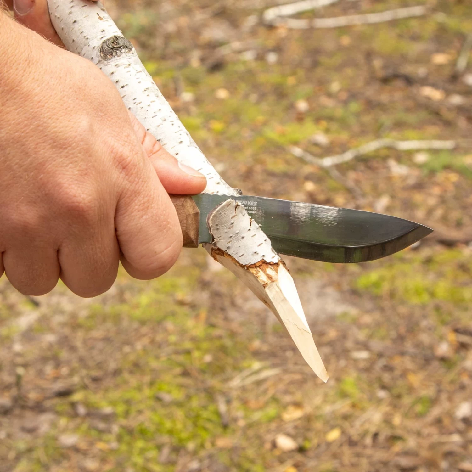 One of the advantages of the Scandi grind is its versatility in working with different types of materials and at different temperatures. The flat bevel provides a wide surface area for the blade to contact the materials, making it easier to make precise cuts and control the depth of the cut. This makes it ideal for working with hardwoods and even frozen wood.