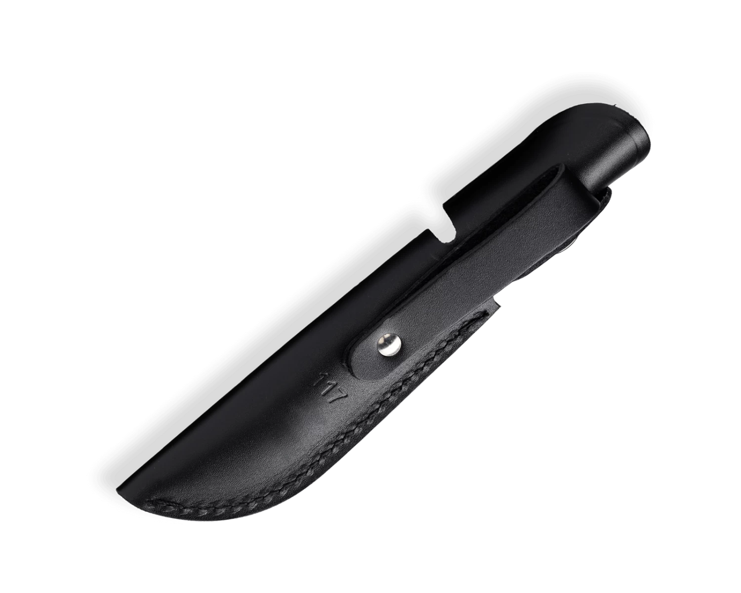 The 117 Brahma knife is an all-purpose hunting and outdoor knife. Known as the mini 119 Special, the classic styling stems from Buck’s early fixed blades. Use the tip of the clip blade for detailed work or the belly of the blade for rugged use. This knife features a traditional guard and pommel. Includes a black, genuine leather sheath with a belt loop. The Brahma carries on the tradition of classic, rugged, dependable Buck Knives.