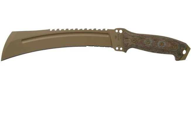 The Buck Talon is a large survival knife. It is almost a machete. It is very versatile, both during camping trips and when maintaining the garden. It was originally designed to clear jungle paths. The blade is enhanced with a ‘hawkbill’ shape. It is almost a hook. The result is that the material is somehow pulled ‘into’ the edge.