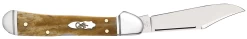 This Equestrian is a part of the Amber Bone Family. Our Amber Bone color and Peach Seed jig are signatures of the Case brand and the true heart of the case line. The Equestrian knife was designed for those who love and take care of horses. Built on a Trapper, the Clip blade and hoof pick make this knife a great tool for both horses and riders. The Clip blade is a multi-purpose blade that is preferred for its versatility. The hoof pick is a common tool for those that care for horses. It is designed specially to clean the area of a horse’s hoof from any rocks or debris. This knife is constructed with Case Tru-Sharp™ stainless steel which is a special high-carbon steel that helps the blades hold an edge longer than conventional steel. It also offers extraordinary blade strength and corrosion resistance.