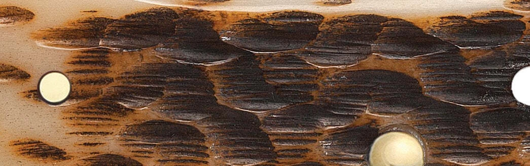 This Russlock is a part of the Amber Bone Family. The Amber Bone color and Peach Seed jig are signatures of the Case brand and the true heart of the case line. The Russlock knife is a pattern that was named after Case founder, J. Russel “Russ” Case. This pattern features a liner lock mechanism, along with a gimped lever for easy opening. The Clip blade on this durable folding knife is commonly used as a multi-purpose utility blade and is preferred for detail work. This knife is constructed with Case Tru-Sharp™ stainless steel which is a special high-carbon steel that helps the blades hold an edge longer than conventional steel. It also offers extraordinary blade strength and corrosion resistance.