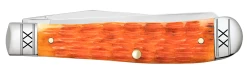 Cayenne Bone, fitted and fixed to perfection, is just the right accent to highlight a great looking ensemble that includes the Case Oval script shield, embellished bolsters, and mirror-polished Tru-Sharp surgical steel blades. The Trapper gets its name from the consumer it was designed for. It is a jack knife with two full length blades; a slender Clip and a long Spey. The Clip blade is commonly used as a multi-purpose blade and preferred for detail work while the Spey blade is commonly used as an all-purpose utility blade. This knife is constructed with Case Tru-Sharp™ stainless steel which is a special high-carbon steel that helps the blades hold an edge longer than conventional steel. It also offers extraordinary blade strength and corrosion resistance.
