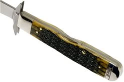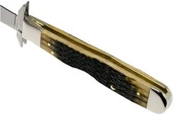 The Case Cheetah is a classic pocket knife with a backlock and a hinged finger-guard. You hardly notice it when the knife is closed, but once opened the finger guard will flip in front of the bolster to make sure your fingers are even safer.