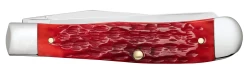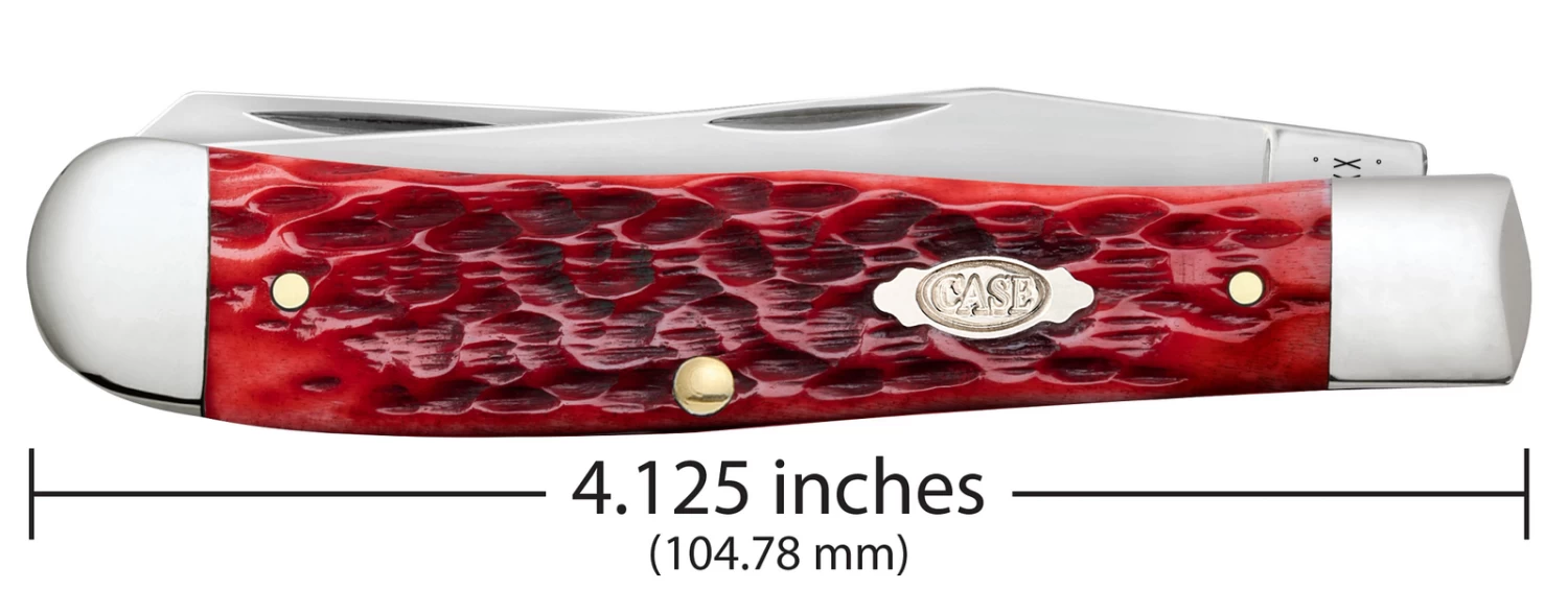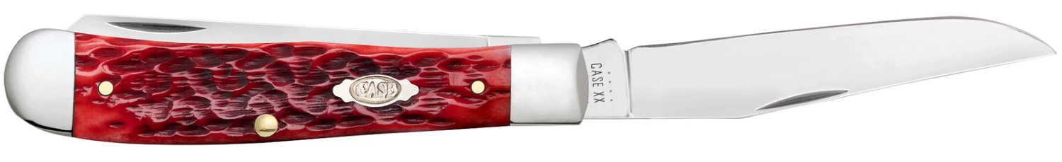 The combination of Dark Red Bone grips with carbon steel blades has been essential to the Case line for years. This series features the Peach Seed jigged handle style; a new twist to an ageless favorite. The Trapper gets its name from the consumer it was designed for. Because of its basic trapping and skinning blades and its light weight, it is a must-have knife for those who trap small game. It is a jack knife with two full length blades; a slender Clip and a long Spey. The Clip blade is commonly used as a multi-purpose blade and preferred for detail work while the Spey blade is commonly used as an all-purpose utility blade. This knife is constructed with our Chrome (CS) steel. Some knife lovers will settle for nothing less than Chrome Steel blades since this special formula of alloyed steel is the “original” Case blade steel. Case Chrome Steel blades are known for their edge-holding ability and easy re-sharpening. However, they are less resistant to rusting, pitting and discoloration than stainless steel. We recommend keeping a thin film of oil on the blade to maintain the finish. This ensures that your knife will be around for future generations to enjoy.
