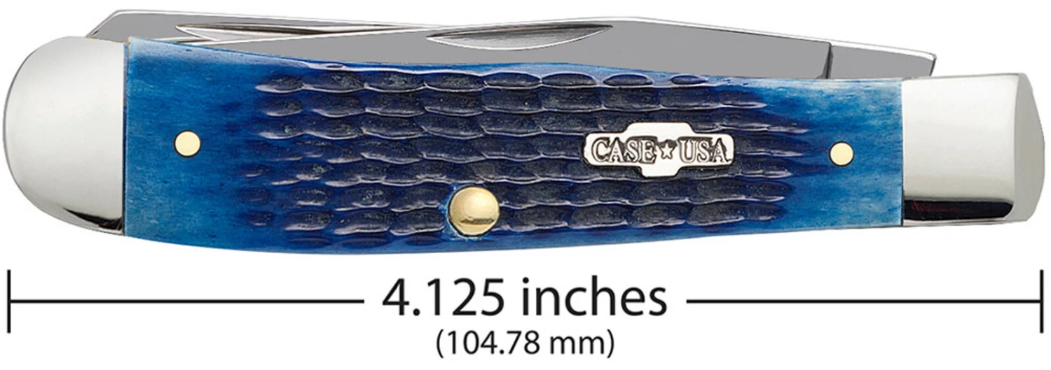 This Trapper is a part of the Blue Bone Family. There’s a reason we call some friends “true blue”. That is because we know we can always count on them, no matter what. The same can be said about Case Blue Bone knives. Time and again, their stainless steel blades get the job done, and their classic blue handles look even better the longer you carry them. The Trapper gets its name from the consumer it was designed for. Because of its basic trapping and skinning blades and its light weight, it is a must-have knife for those who trap small game. It is a jack knife with two full length blades; a slender Clip and a long Spey. The Clip blade is commonly used as a multi-purpose blade and preferred for detail work while the Spey blade is commonly used as an all-purpose utility blade. This knife is constructed with Case Tru-Sharp™ stainless steel which is a special high-carbon steel that helps the blades hold an edge longer than conventional steel. It also offers extraordinary blade strength and corrosion resistance.