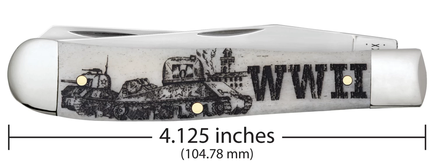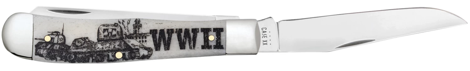 This all-new Trapper collection showcases some highly detailed handle artwork to help preserve the stories behind some of the USA’s most defining moments. The Trapper gets its name from the consumer it was designed for. Because of its basic trapping and skinning blades and its light weight, it is a must-have knife for those who trap small game. It is a jack knife with two full length blades; a slender Clip and a long Spey. The Clip blade is commonly used as a multi-purpose blade and preferred for detail work while the Spey blade is commonly used as an all-purpose utility blade. This knife is constructed with Case Tru-Sharp™ stainless steel which is a special high-carbon steel that helps the blades hold an edge longer than conventional steel. It also offers extraordinary blade strength and corrosion resistance.