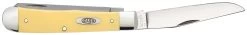 This Trapper is a part of the Yellow Synthetic Family. The distinctive yellow handle brightens this family while maintaining its toughness, making it one of the most beloved in the Case line. The Trapper gets its name from the consumer it was designed for. Because of its basic trapping and skinning blades and its light weight, it is a must-have knife for those who trap small game. It is a jack knife with two full length blades; a slender Clip and a long Spey. The Clip blade is commonly used as a multi-purpose blade and preferred for detail work while the Spey blade is commonly used as an all-purpose utility blade. This knife is fitted with high carbon steel blades known for their high tensile strength, wear resistance, and toughness. Many prefer this steel for its edge retention and ease of re-sharpening. Since these are not stainless steel blades, a thin coat of oil applied on them after each use can help maintain their original finish.