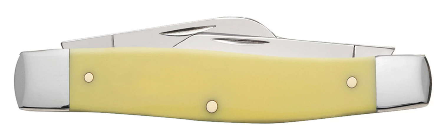 This Large Stockman is a part of the Yellow Synthetic Family. The distinctive yellow handle brightens this family while maintaining its toughness, making it one of the most beloved in the Case line. Stockman’s pack three blades in a convenient but very practical pocket knife. The Clip and Sheepfoot blade sit on the pocket end while the Spey blade sits on the cap end. The Clip blade is commonly used as a multi-purpose blade and preferred for detail work. The Sheepfoot blade allows for added strength at the point making it great for carving and achieving a clean cut. The Spey blade is commonly used as an all-purpose utility blade. This knife is constructed with our Chrome Vanadium (CV) steel. Some knife lovers will settle for nothing less than Chrome Vanadium blades, since this special formula of alloyed steel is the “original” Case blade steel. Case Chrome Vanadium blades are known for their edge-holding ability and easy re-sharpening. However, they are less resistant to rusting, pitting and discoloration than stainless steel. We recommend keeping a thin film of oil on the blade to maintain the finish. This ensures that your knife will be around for future generations to enjoy. Comes conveniently packaged in a box. Made in Bradford, PA, USA from domestic and imported materials.