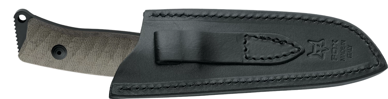 The Fox Pro-Hunter is a premium fixed blade hunting knife designed and manufactured in Italy. It features high grade materials and build quality. Bohler N690 steel offers a hard blade with excellent corrosion resistance. Matched with a OD micarta handle. The Pro-Hunter fixed blade is a beefy, yet nimble hunting knife. It has the strength and reliability of full-tang construction and includes a leather sheath for belt carry.
