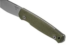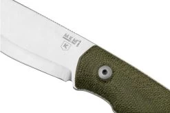 The MKM Normar Knivesandtools Exclusive Green Micarta is a bushcraft knife that is also great as an all-round outdoor knife, or for hunting or survival purposes. It was designed by Jesper Voxnaes, in collaboration with Knivesandtools! With this knife, we wanted to get the most out of this type of steel. That’s why the edge has a scandi-grind, which is a first for LionSteel. The blade is long and thick enough to split a thick branch. In addition, the belly of the blade is great for food prep or for skinning hides. The sharp tip is great for cutting tasks that require precision. And at the pommel, the steel sticks out a bit, so you can also use this knife as a firestriker.