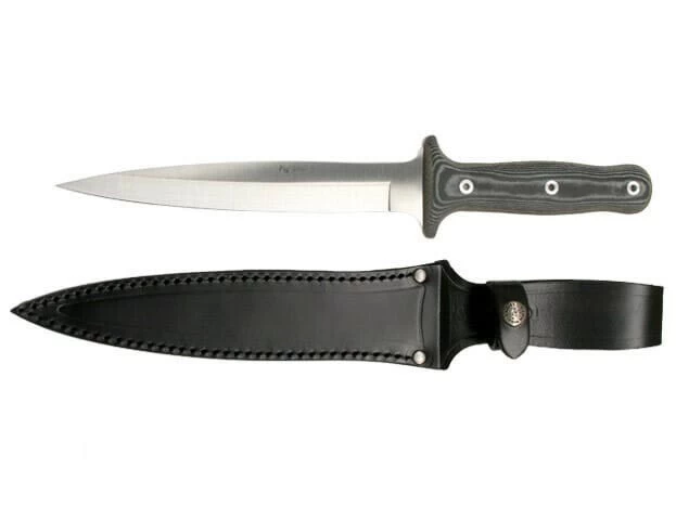Developed exclusively for Aussie hunters in conjunction with Nieto’s custom knifesmiths as a dedicated pig hunting knife. The 4mm 440 stainless full tang blade with high density triple riveted scales makes it virtually unbreakable. The double hand guard design in conjunction with a long tapered drop point blade ensures it performs flawlessly when the action gets fast and furious. A well -fitting and sturdy genuine leather sheath rounds out the whole package nicely.