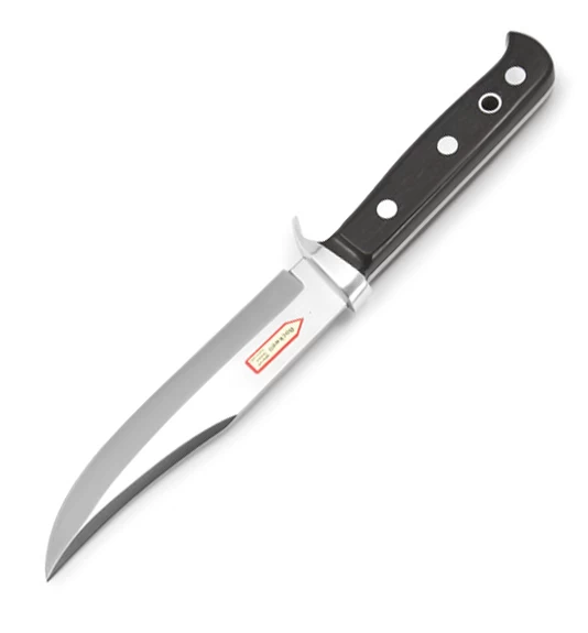 A tradional hunting knife manufactured in Puma’s German factory. A knife which is solid sporting a 5.43 inch forged blade and paired with a polished black pakkawood handle and a magnificent leather sheath.