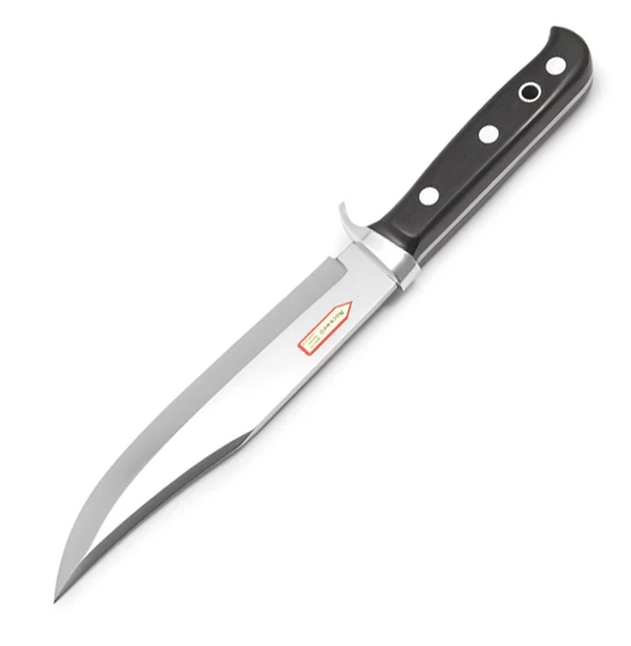 A tradional bowie knife manufactured in Puma’s German factory. A knife which is solid and sporting a 6.5 inch blade and paired with a polished black pakkawood handle and a magnificent leather sheath. A smaller brother to the Puma Phönix.